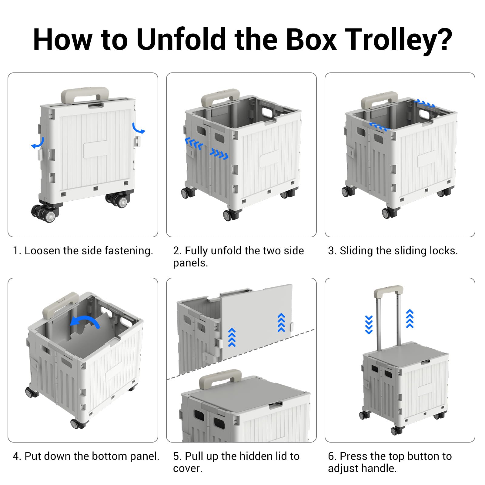 This foldable trolley is ideal for grocery shopping, teacher use, or outdoor activities like camping and beach outings. It holds various items with ease, making everyday tasks more efficient.