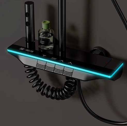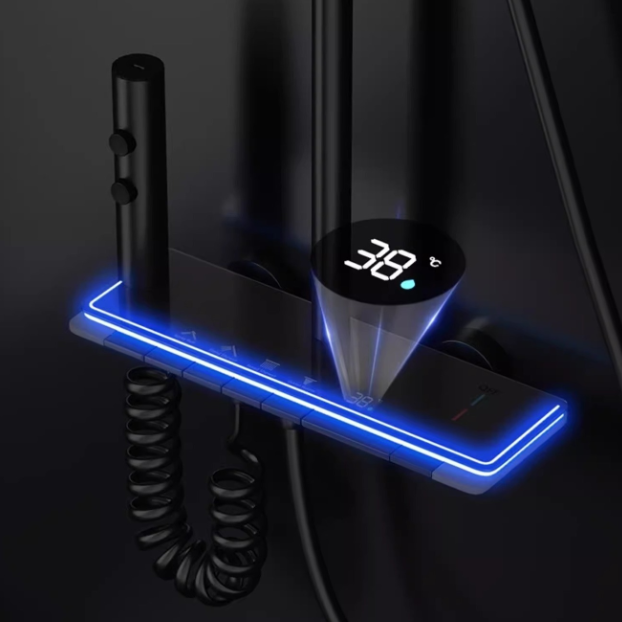 Full Copper Thermostatic Shower Set – LED Display, Ambient Lighting & 4-Mode Water Flow