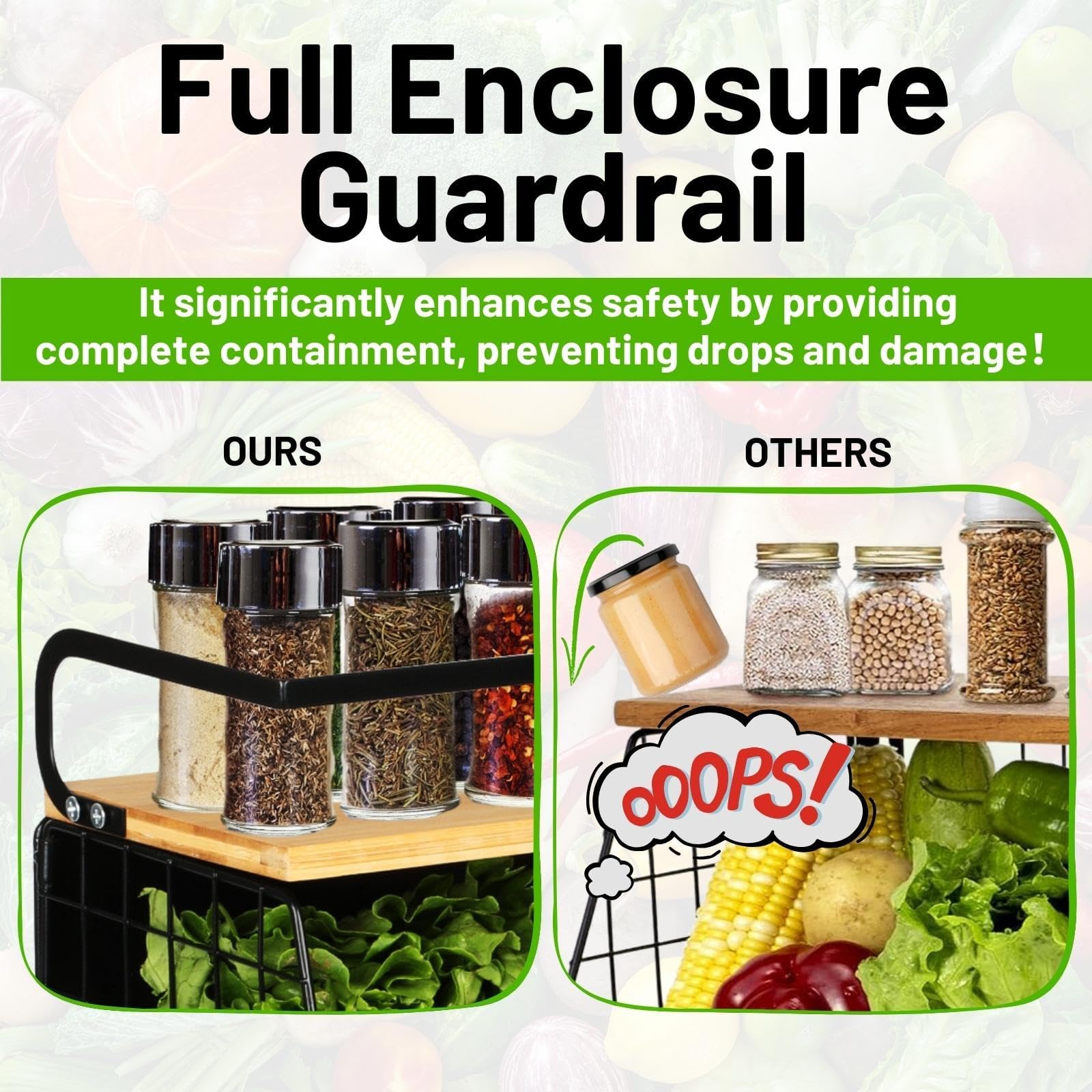 Built with a powerful magnetic backing, the shelf attaches firmly to any metal surface—such as refrigerators, metal cabinets, and steel shelves—without additional tools or hardware. Its 15kg load capacity ensures it can securely hold fruits, vegetables, utensils, condiments, and more without bending or slipping.